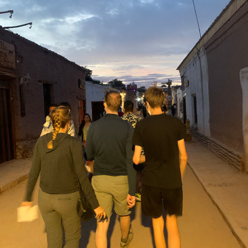 Dmitri and I wake before the rest and drive into town in search of a grocery store. We stock up on some basics and plan to have breakfast in our little lodge and maybe a lunch or two as well. By the time we get back, the kids are awake and poor Jack has many bug bites. He is not thrilled with San Pedro de Atacama at this point. He does not like the mosquitos or the lack of air con. Poor wifi nearly pushes him over the edge. Yikes. He DOES, however, like the cat who comes to visit. We find out later her name is Farisca and she is the BEST. She comes right in and makes herself at home and is so so friendly. We all become attached to her and by the end of our time in the desert we are buying cans of food for her. I only hope latter residents of the Vernacular Lodge are kind to her. Such a sweetie! We also get a visit from this big puppy, Kila. Super chill dog. It’s also possible that we are feeding her by the end of our stay. The kids roll their eyes at me and I tell them—I can’t help myself and I’m not going to try. Feeding our little friends makes me happy!
